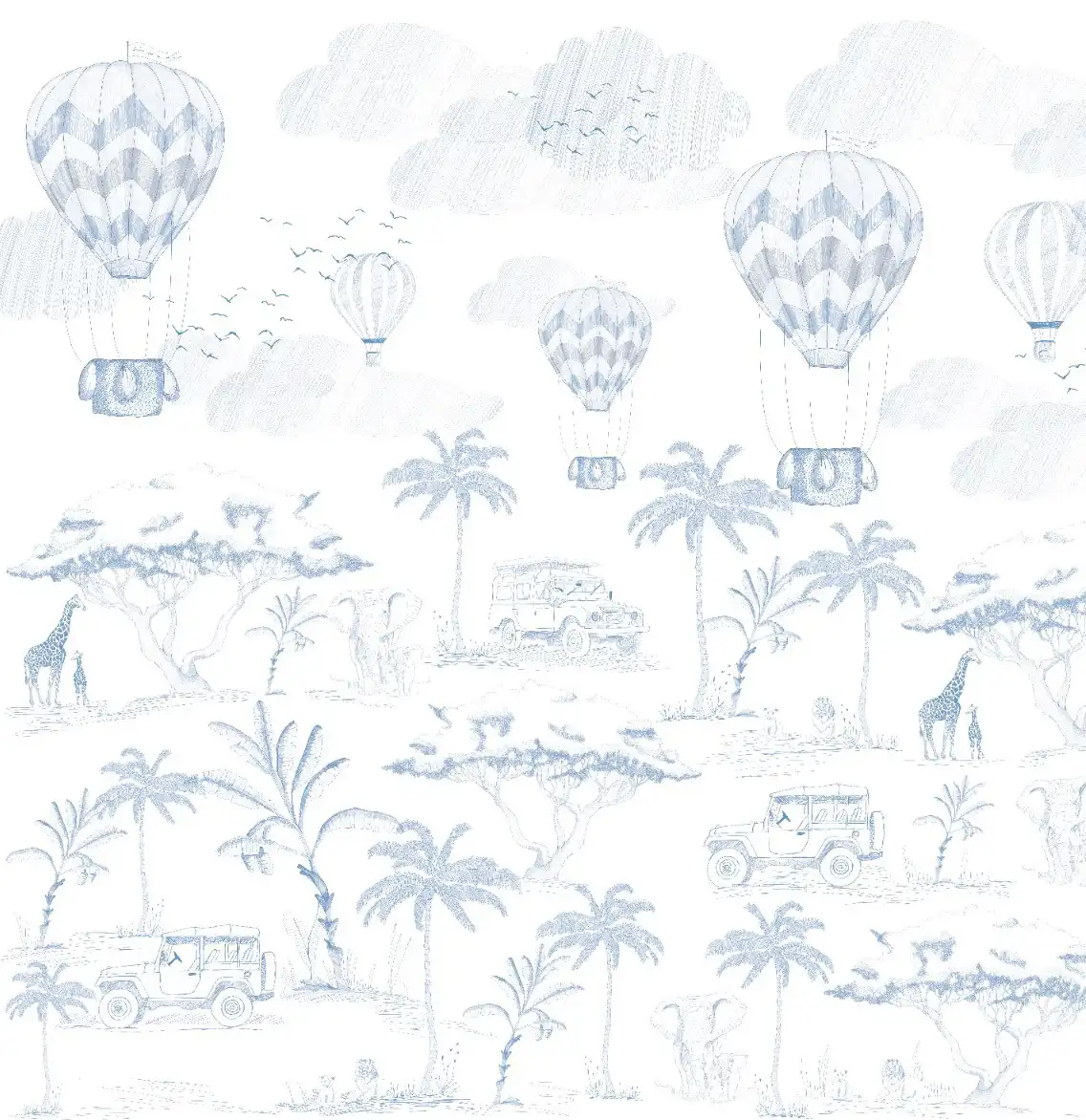 Elige el fotomural de safari azul y crea una atmósfera única en la habitación de tu hijo, introduciendo al mismo tiempo un toque de aventura, naturaleza y elegancia. Es una decoración perfecta que encantará a todo pequeño amante de la naturaleza y de descubrir el mundo.