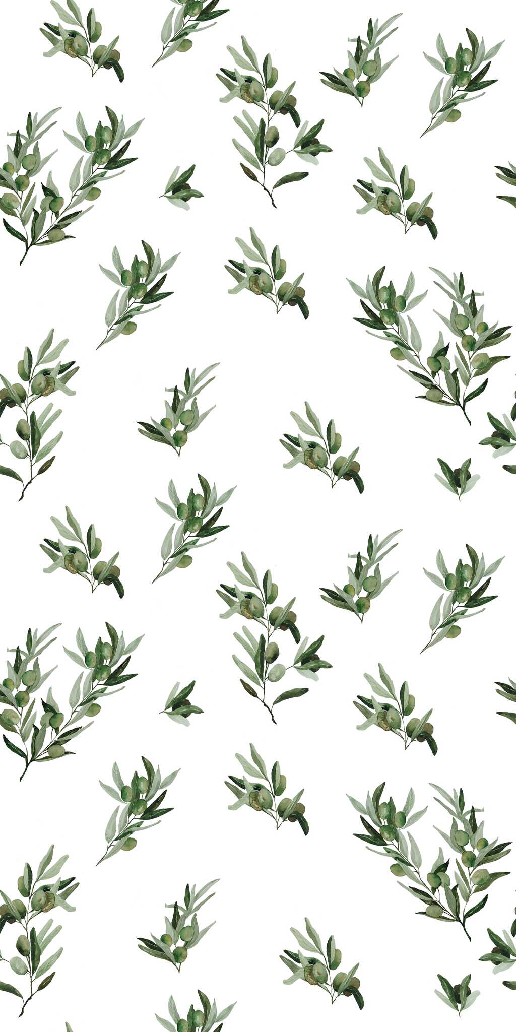 Papel pintado para la cocina con ramas de olivo sobre fondo blanco – en rollo