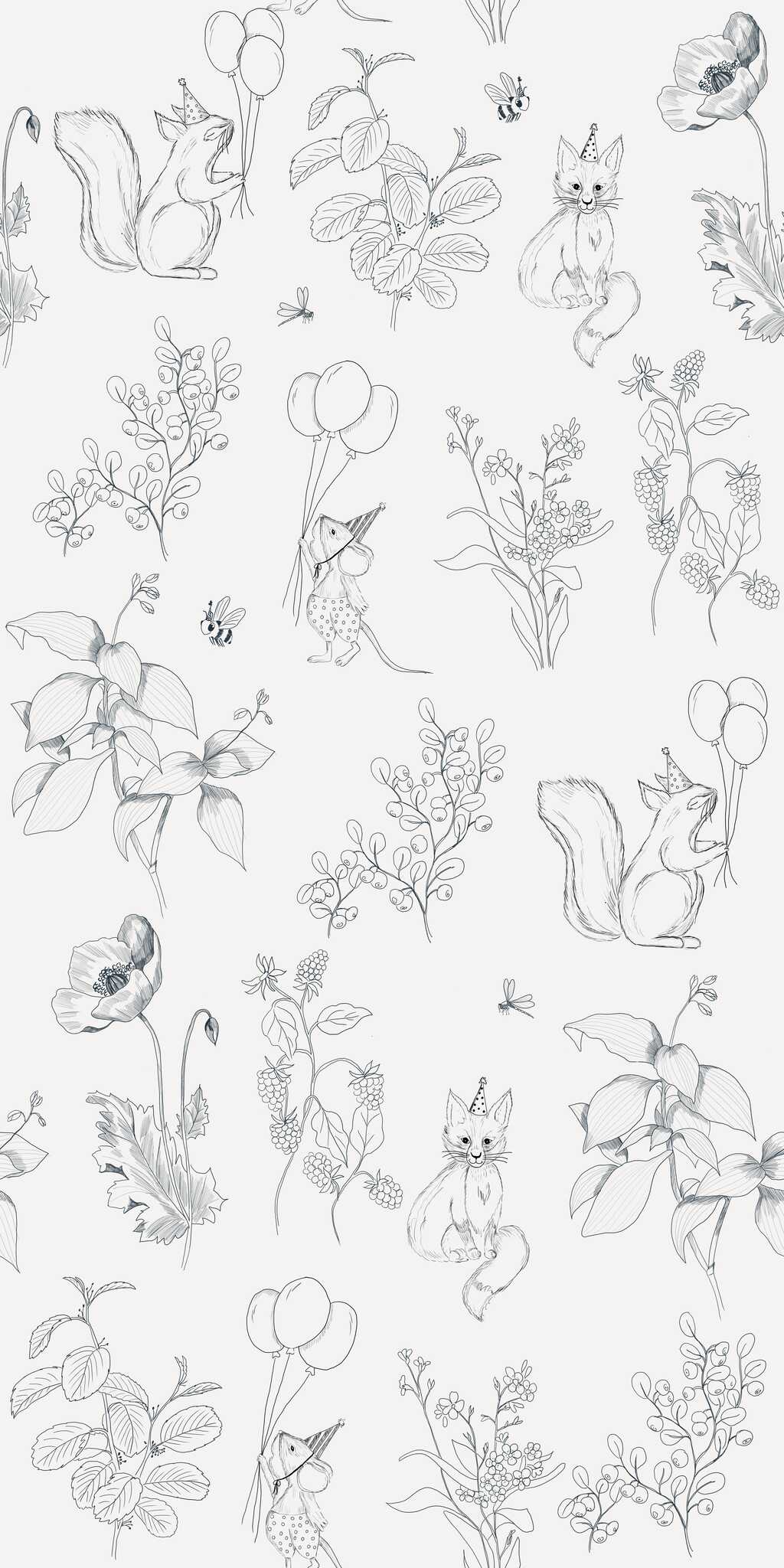 Papel pintado con zorro, ratón y ardilla – en rollo
