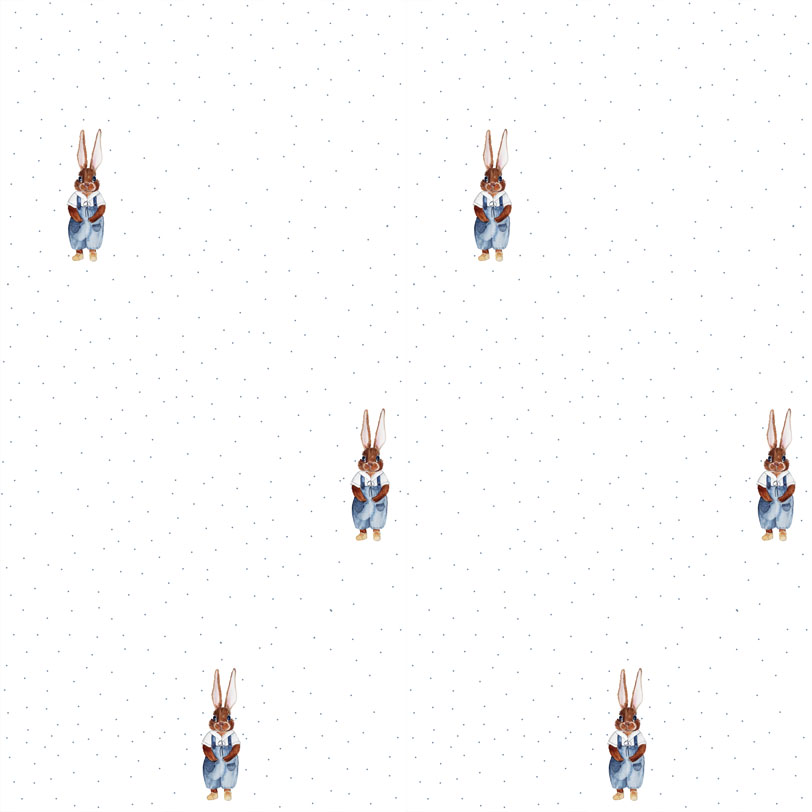 Papel pintado para habitación de niño con el legendario conejo sobre un fondo de puntitos.