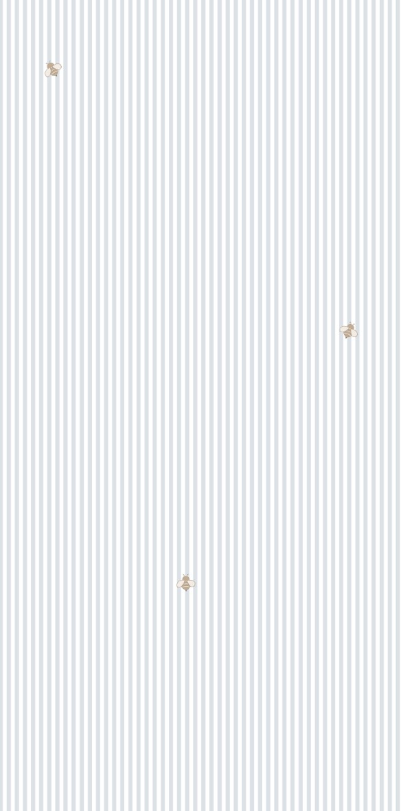 Papel pintado de abejas y rayas azules sobre un fondo claro.