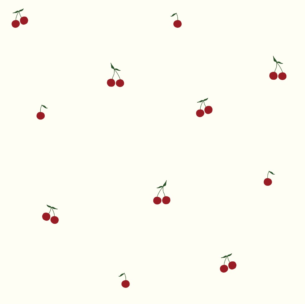 Como del huerto de la abuela… Un papel pintado con pequeñas cerezas que evoca un verano sin preocupaciones