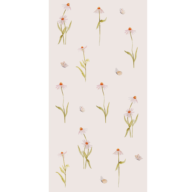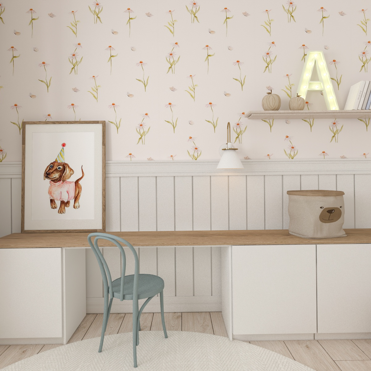 Papel pintado con flores de equinácea y encantadoras mariposas: crea una habitación de cuento de hadas para tu niña