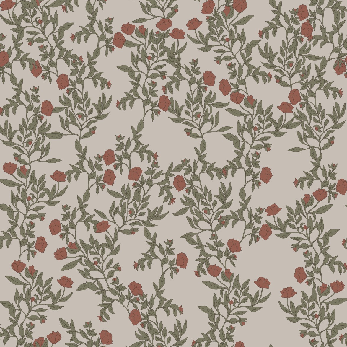 El papel pintado con motivo de flores de eustoma es ideal para el dormitorio, el salón o el comedor. El papel pintado presenta una paleta de colores burdeos y verdes sobre un fondo beis. Es expresivo pero a la vez muy sutil. El papel pintado presenta un motivo de flores trepadoras. El color burdeos es un color de acento, por lo que el papel pintado no domina en el interior. El papel pintado quedará fantástico en interiores de estilo modern farm house, vintage y rústico. Combina a la perfección con los colores de la madera.
