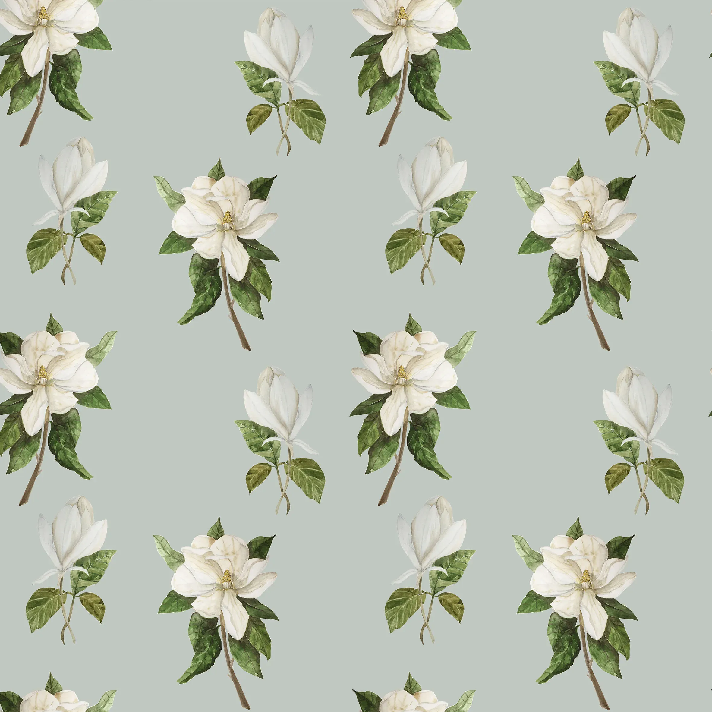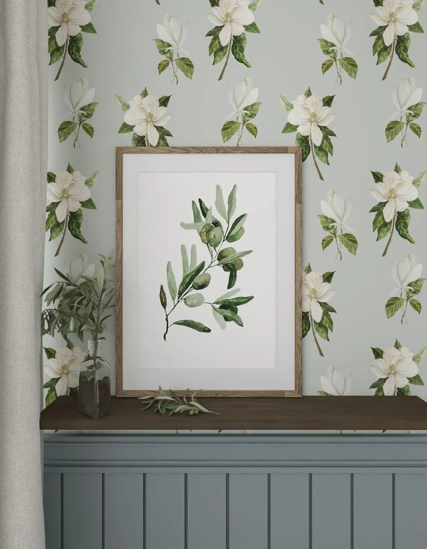 El papel pintado de flores de magnolia le da a la estancia un carácter enérgico, perfecto para la cocina, el comedor o el dormitorio. Los detalles pintados a mano hacen que cada elemento sea único y el interior adquiera un carácter personal e individual.