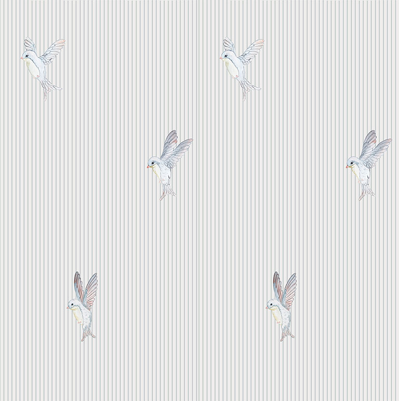 Papeles pintados para la habitación de una niña con pájaros y rayas