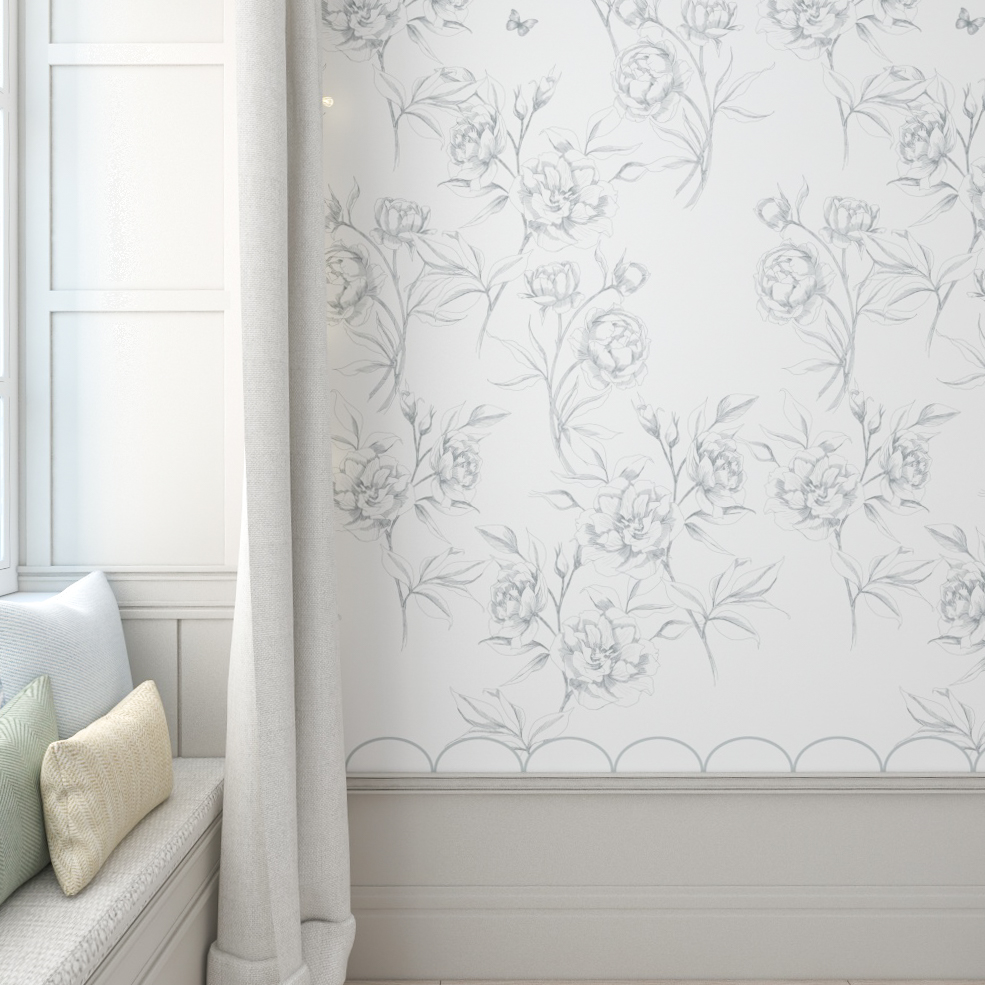 - Diseño de peonías: Delicadas peonías azules florecen sobre un fondo de color beige cálido, creando una composición armoniosa y relajante. El diseño está cuidadosamente dibujado, lo que le da al papel pintado un carácter artístico.