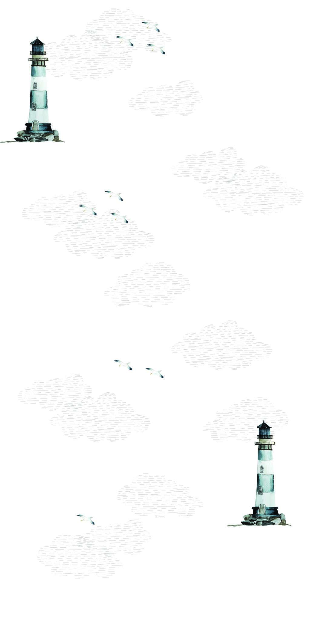 Papel pintado de faro, gaviotas y nubes – en rollo