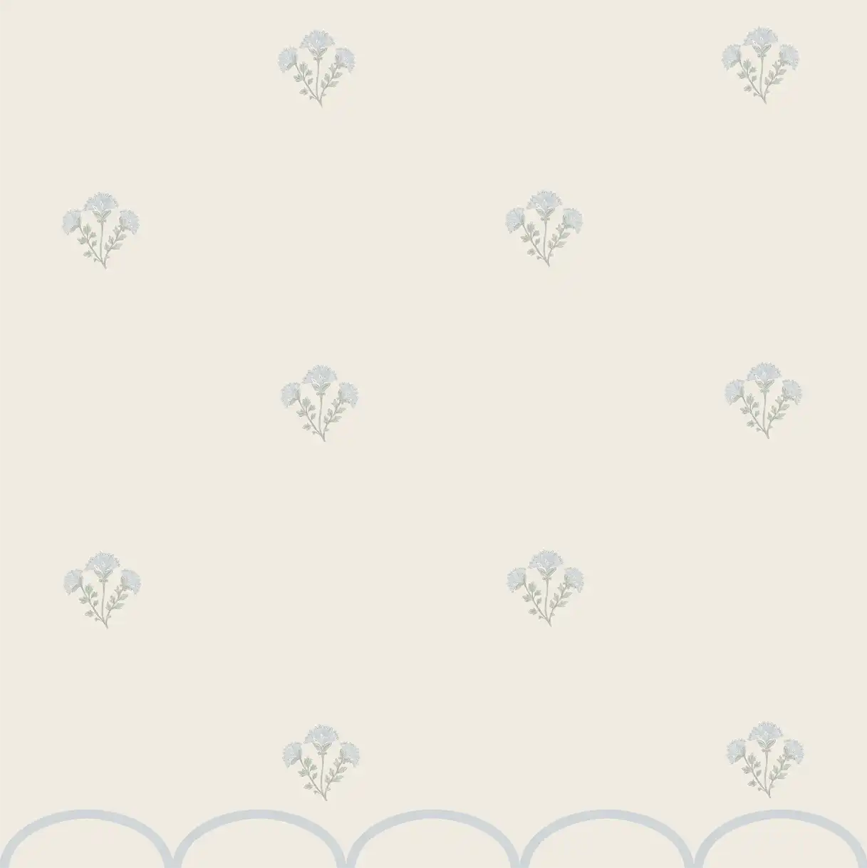 Esta es una colección que incluye papeles pintados de estilo “modern farmhouse”. Este papel pintado presenta una paleta de colores azul y salvia con un encantador volante en la parte inferior. El papel pintado con flores azules y hojas de color salvia es una opción ideal para la habitación de una niña, el salón, la cocina, el comedor o el recibidor. El papel pintado encaja perfectamente con los estilos “modern farmhouse”, rústico, idílico o campestre.