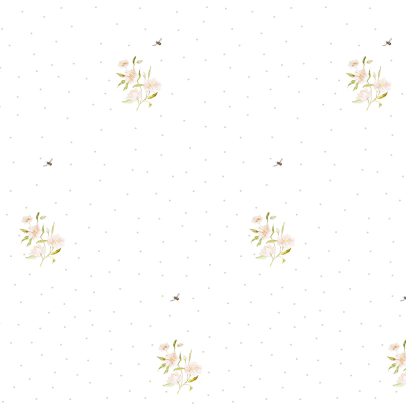 Este diseño permite transformar cualquier habitación en un jardín mágico y personal, donde el niño se sentirá seguro y cómodo. El fondo claro, combinado con flores y abejas de colores, amplía ópticamente el espacio e ilumina la estancia, dándole un toque acogedor y ligero. El papel pintado combina perfectamente tanto con accesorios en tonos pastel como con elementos naturales, como estantes de madera o textiles suaves.