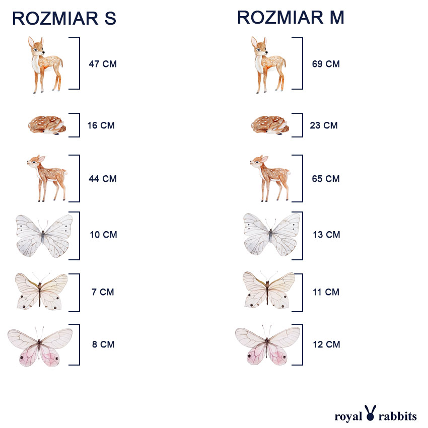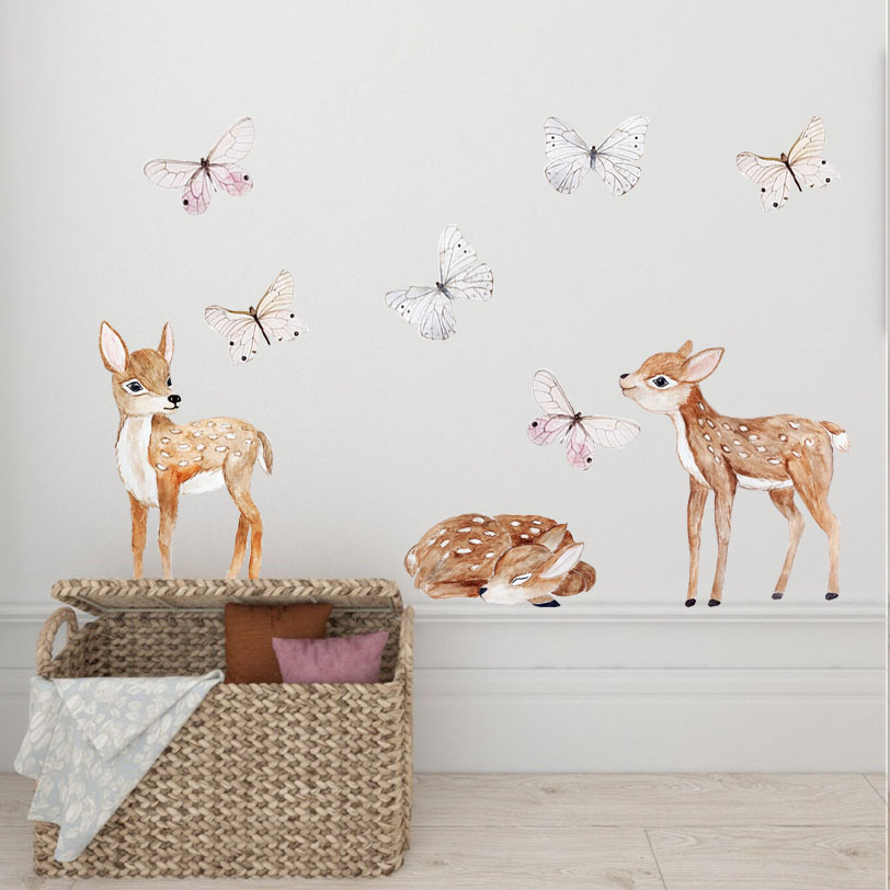 Naklejki ze zwierzętami do pokoju dziecka – urocze sarenki i motylki w rozmiarach S i M
