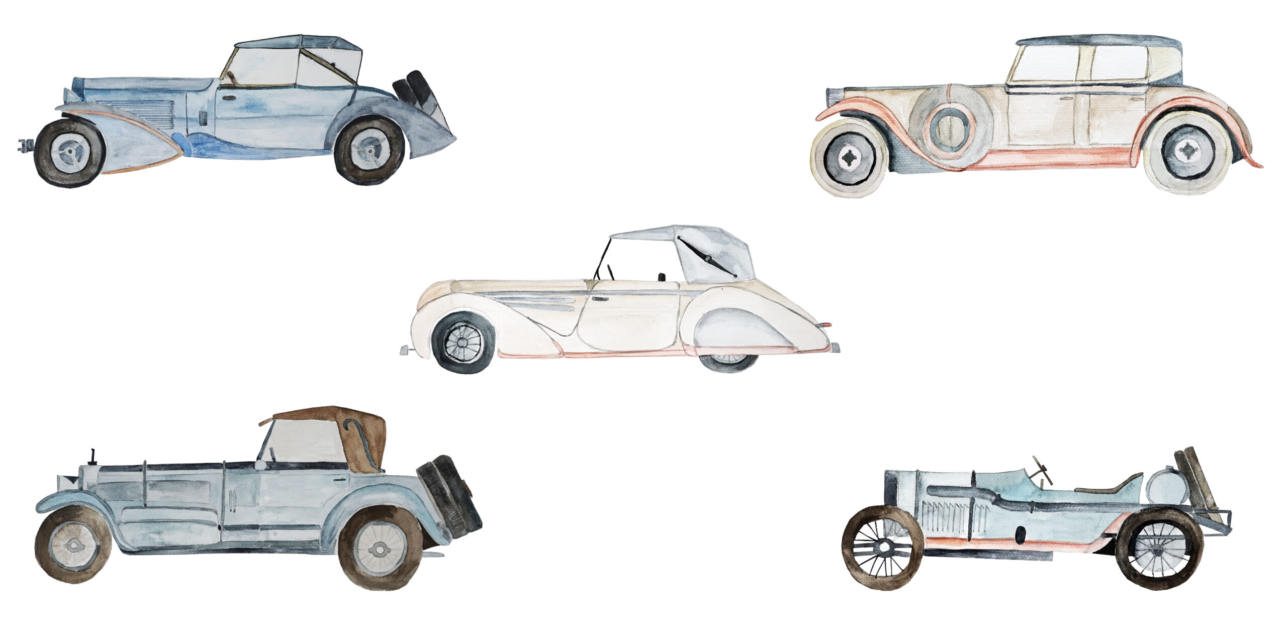 Vinilos de acuarela de coches retro: arte y nostalgia en la habitación de tu hijo